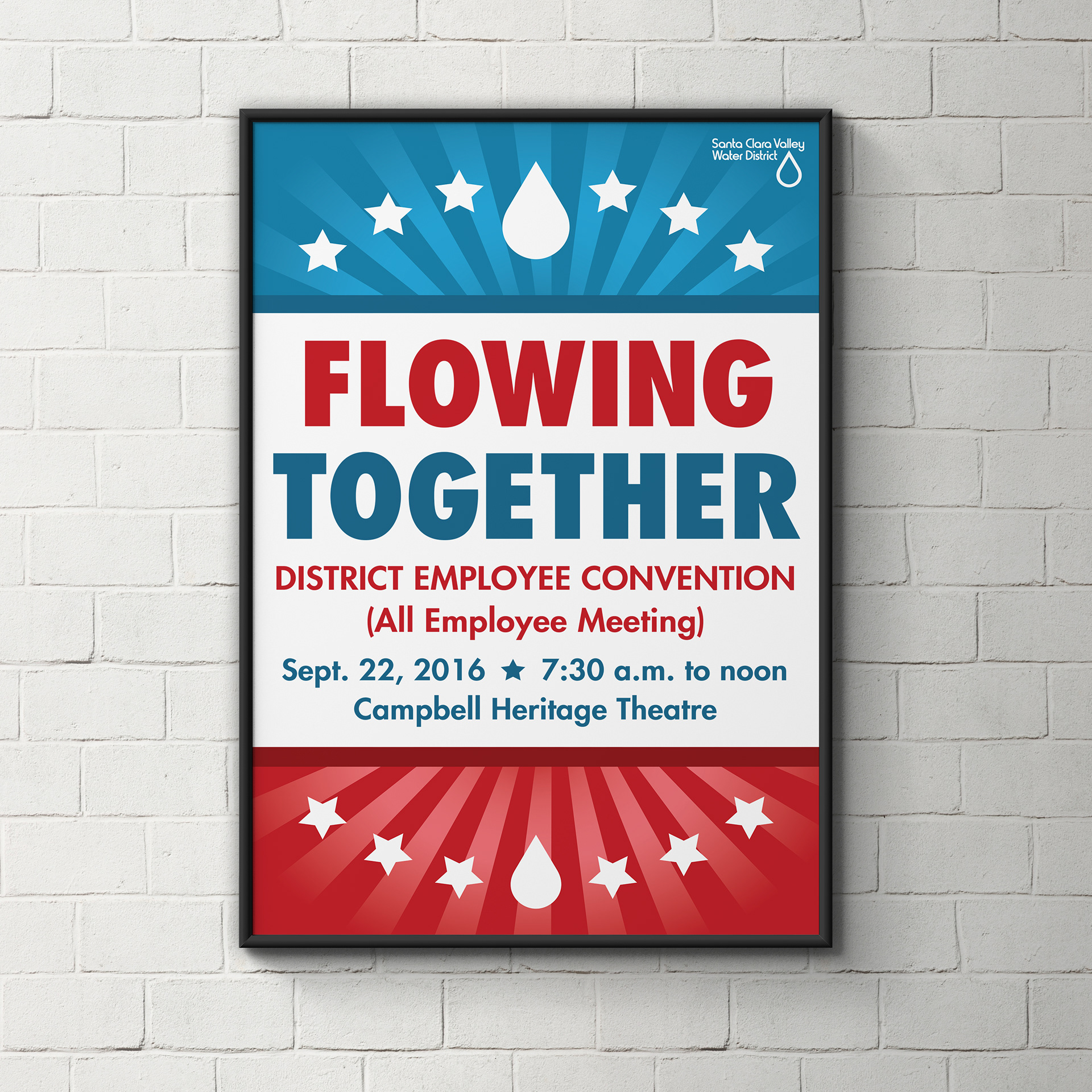 Flowing Together is a Santa Clara Valley Water District all-employee meeting in 2016, mimicking a political campaign theme with a message that employees in our organization are united.